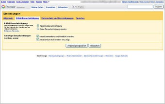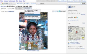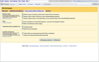 Eigene Fotos oder bis zu einem Gigabyte große Filme lädt man entweder einzeln über die Webseite oder mit der Software Picasa in neue oder bestehende Alben hoch. Neben Titel, Datum und einer Beschreibung kann man in Picasa Web die Aufnahmen auch um Ortsinformationen und Namens-Tags ergänzen.